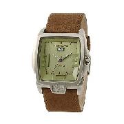 Kahuna - Men's Green Brushed Dial with Brown Strap Watch